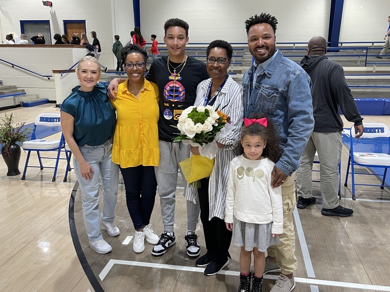 The program began with the National Anthem, performed by senior Maegan Hall. Class president Brayden Johnson greeted students, staff and guests, then Blessing McDowell provided a Negro History Week lesson. The 7th grade dance and cheer teams joined together in dance to “Stand Up” the lead single from the soundtrack to the biographical film Harriet.