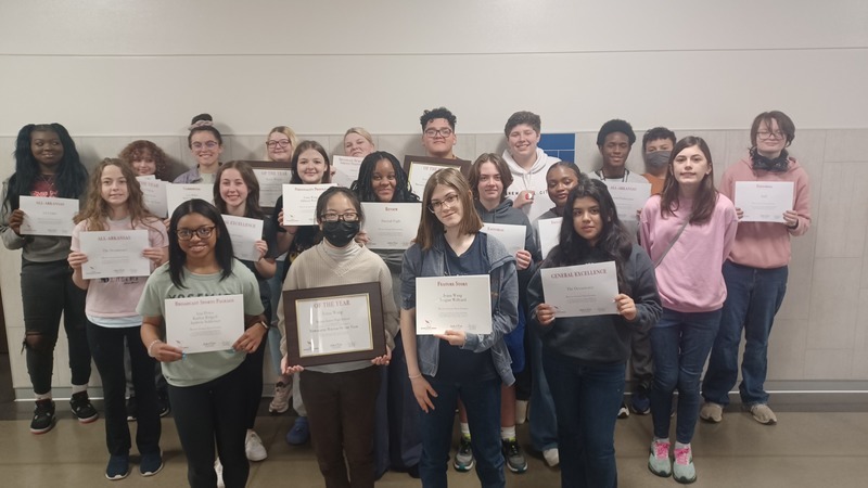 Bryant Junior High Media won 69 awards at Arkansas Scholastic Press Association. Among the top awards, The Occurrence, The Blue and White, Swarm Productions, and Dynamic all earned a Superior in General Excellence and went on to be ranked All-Arkansas.