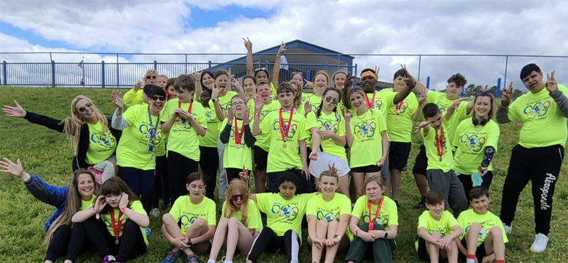 The entire Bethel family helped the students prepare for competition. Mrs. McEntire purchased backpacks; Mrs. Maxwell provided monogramming; and Mrs. Hughes and M. Claires Chic Boutique supplied t-shirts. One of Ms. Reeves students, Lily Shaw, designed the Special Olympic t-shirts this year. Coach Denise Smith and the Bethel girls basketball team, along with three Cross Country athletes, helped train and support the Special Olympic athletes for the games.